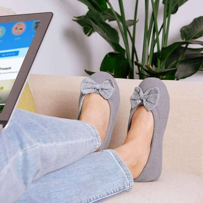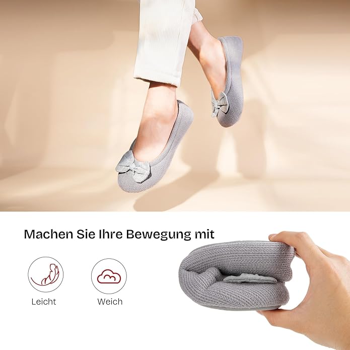 - SUPERIOR RESPIRABIL DIN BUMBAC TRICOTAT: Cu material respirabil îmbunătățit, aceste pantofi de balet fără spate îți lasă picioarele fără probleme și fără căldură toată ziua și în toate anotimpurile. Încalță aceste papuci de balet ușori și bucură-te de timpul petrecut în dormitor, la birou, în călătorii, după duș sau în timpul unei conversații casual în familie.