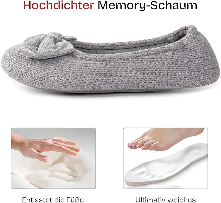 Papuci de balerina pentru femei, confortabili, usori din bumbac, spuma cu memorie, gri, 40-41 EU, EverFoams