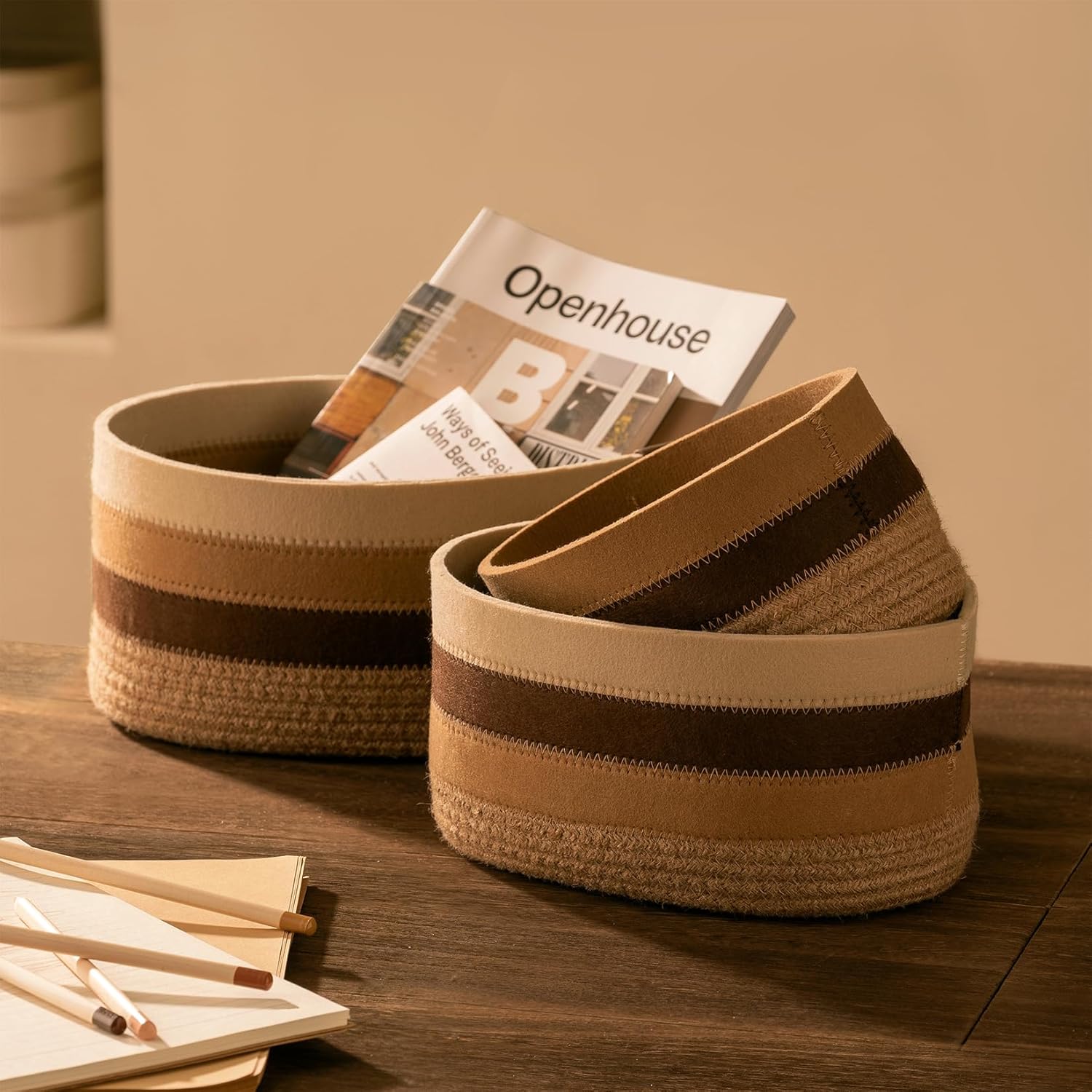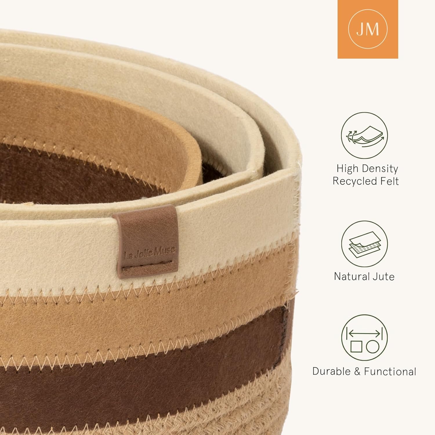 Set 3 Cosuri de depozitare tesute din pasla si iuta pentru organizare, maro, LA JOLIE MUSE