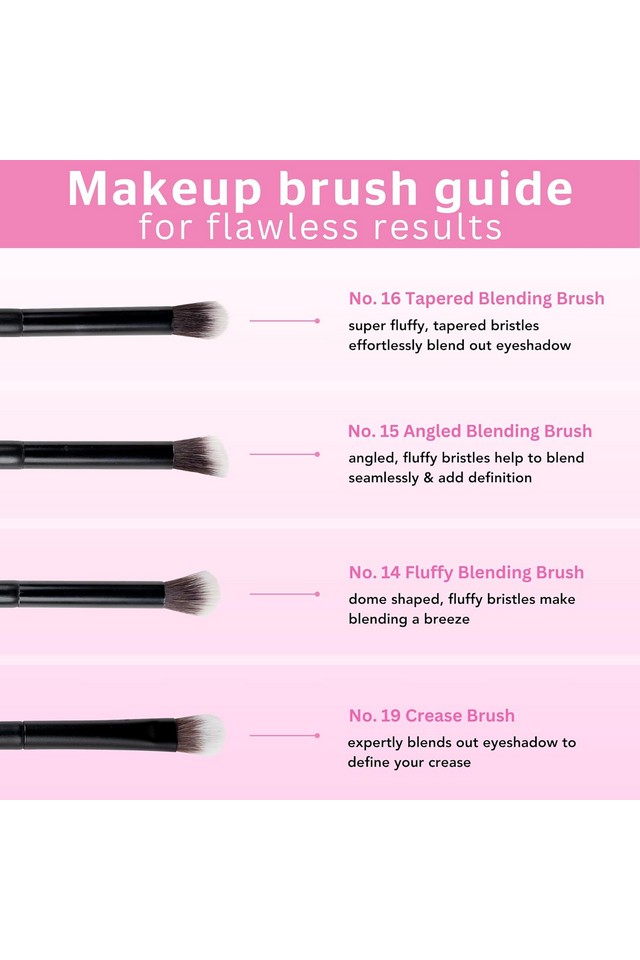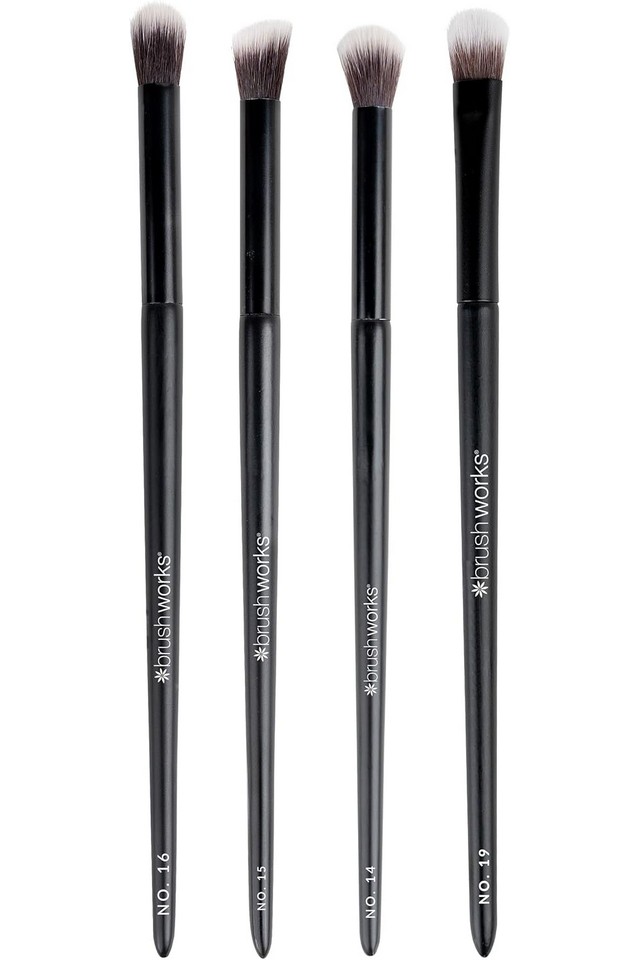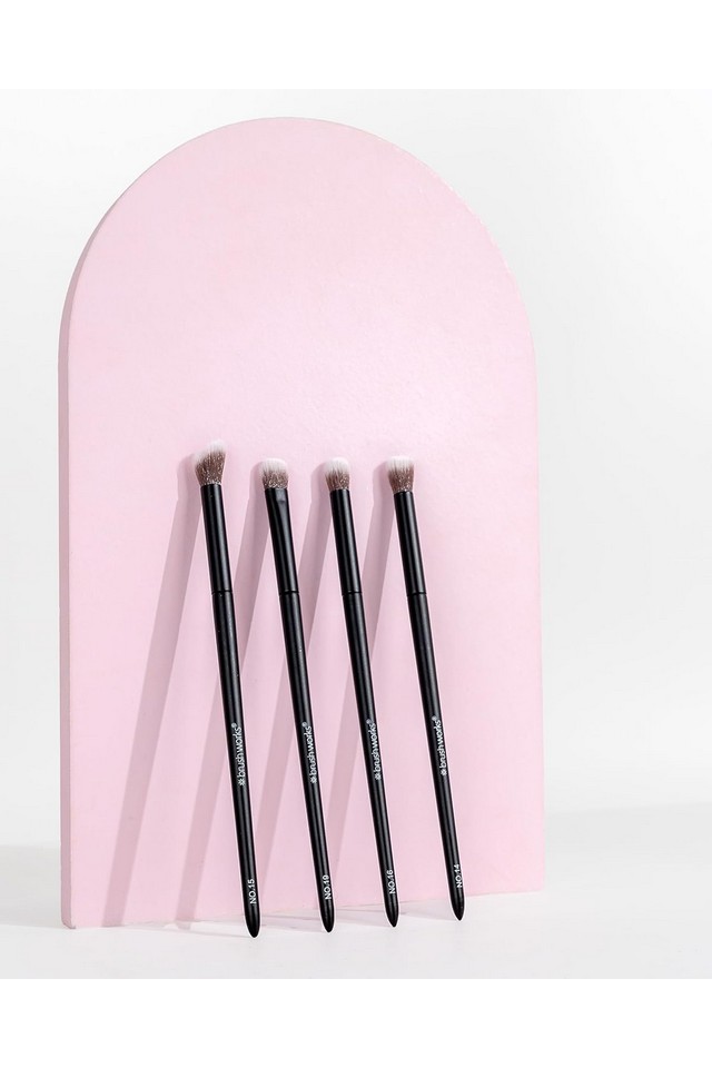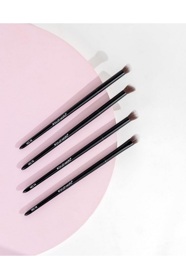 Transformă-ți machiajul ochilor cu setul Brushworks Eye Blending, o colecție concepută pentru a scoate în evidență artistul din tine. Acest set include pensula pentru amestecare conică nr. 16, pensula pentru amestecare în unghi nr. 15, pensula pentru amestecare pufoasă nr. 14 și pensula pentru cute nr. 19, fiecare selectată pentru a satisface fiecare pas al rutinei tale de fard de pleoape. Dispunând de peri sintetici taklon super moi, se asigură că fardurile tale de pleoape alunecă fără probleme, fiind în același timp extrem de blânde cu zona delicată a ochilor.